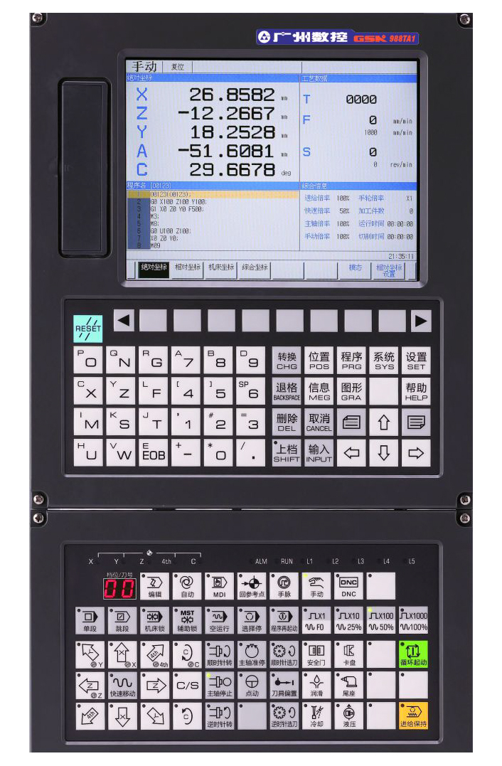 采用GSKLink工業(yè)以太網(wǎng)總線, 最高運行速度100m/min。標配GR-L系列伺服裝置及高分辨率絕對式編碼器的伺服電機, 可連接光柵尺、磁阻、磁柵、圓光柵編碼器等實現(xiàn)進給軸全閉環(huán)控制和高精度Cs軸控制。