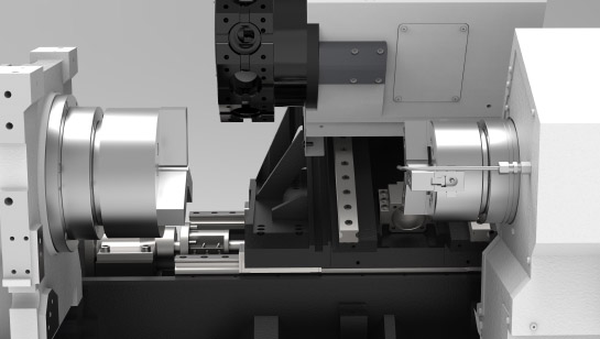 ? 通過雙主軸結(jié)構(gòu)實現(xiàn)同步對接,完成一次裝卡,正反兩面加工零件。